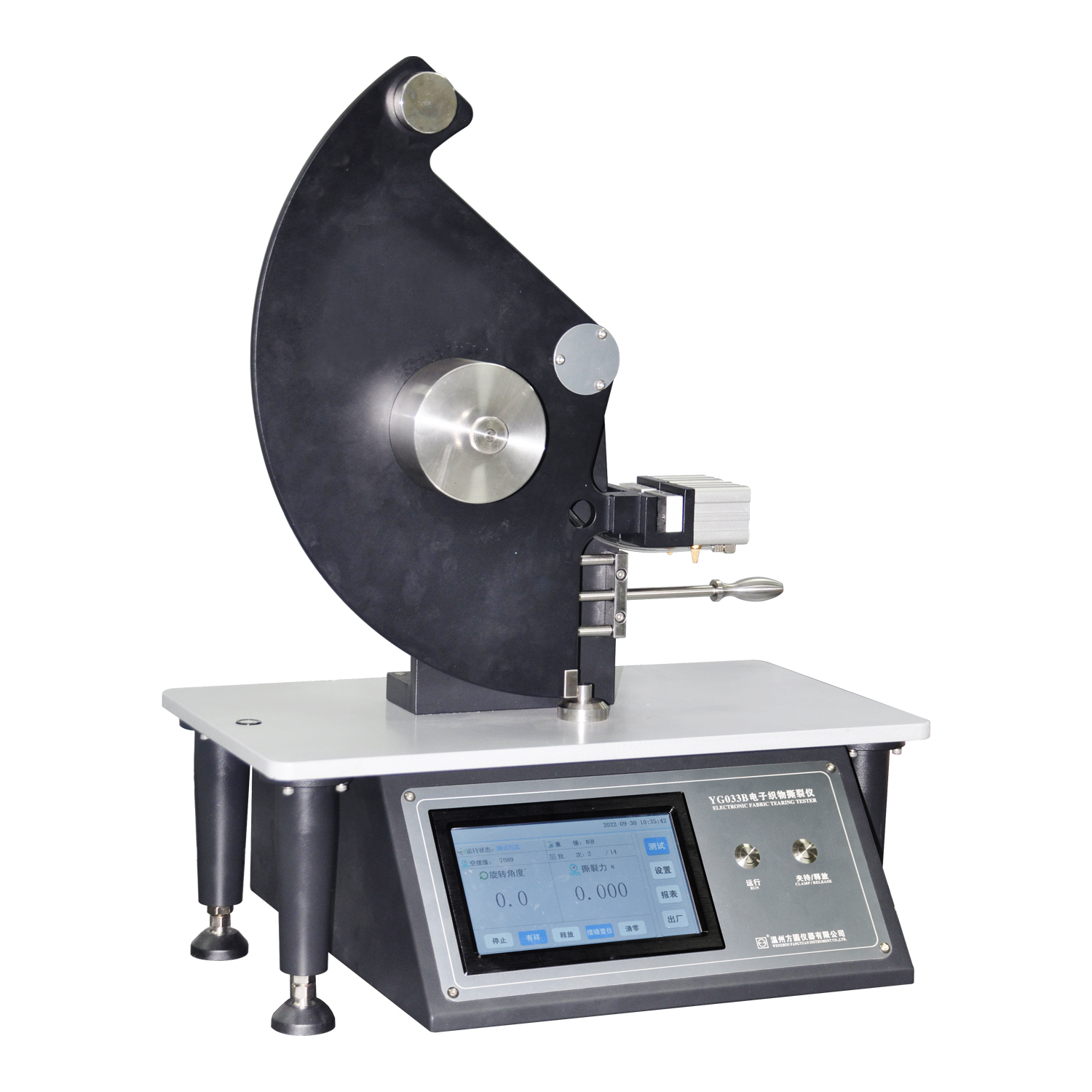 YG033B電子式織物撕裂儀 GB/T3917.1紡織品 織物撕破性能 第1部分 沖擊擺錘法撕破強力的測定、ASTM D 1424、DIN 53862、ISO 13937-1、ISO 4674-2、ISO 9290等。